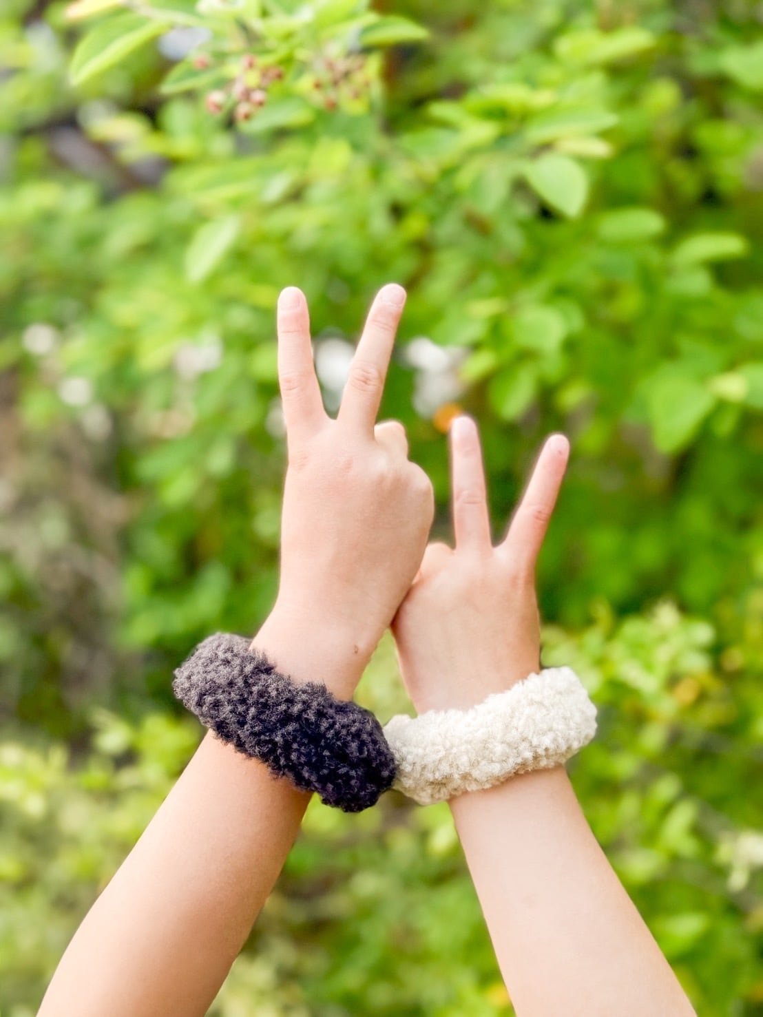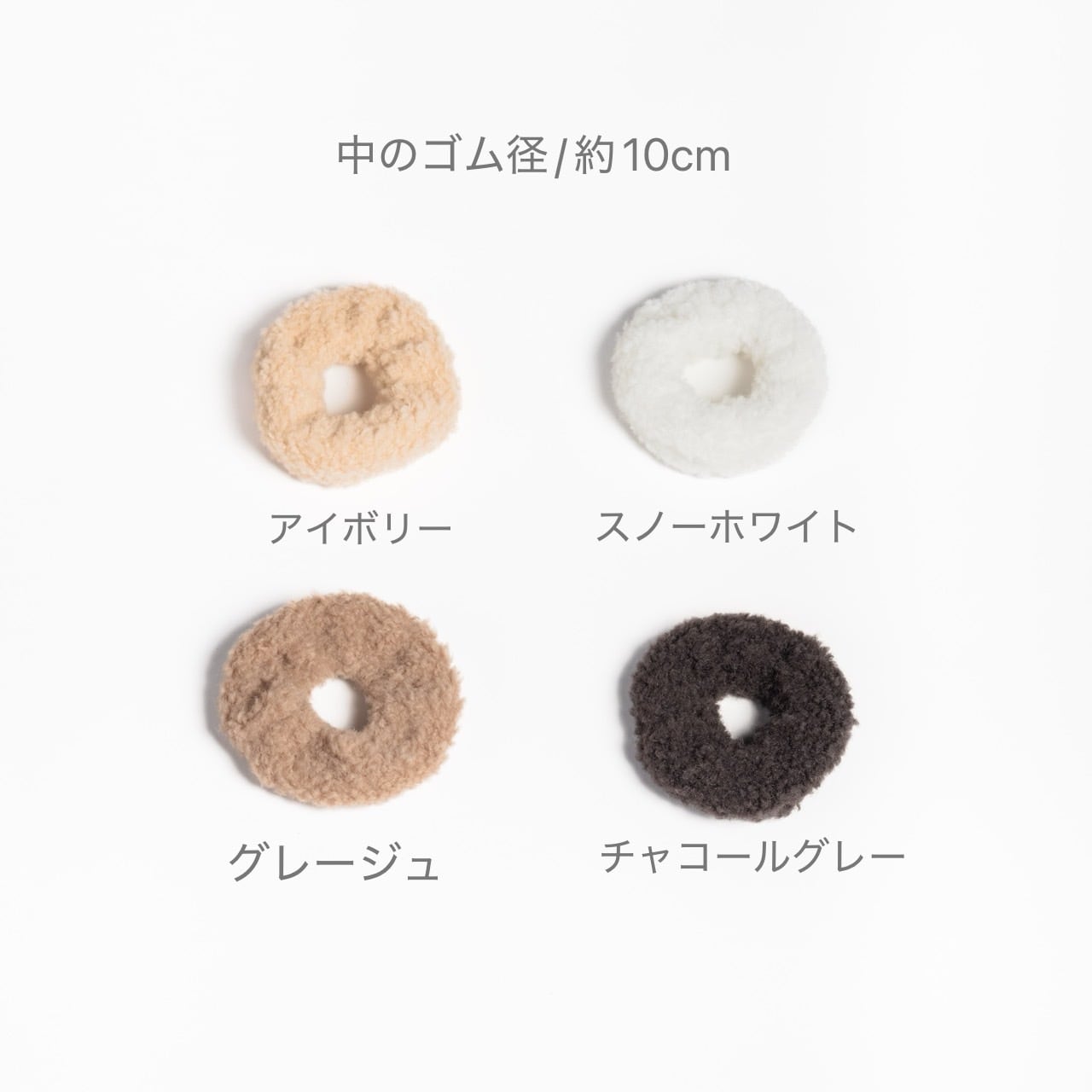 静電気や電波を吸収して熱に変換・放電する特殊繊維で作られた生地で、シュシュをつくりました。ふわふわ軽く暑苦しくないのに、放電するから何故かじんわりあたたまる。オールシーズンお使いいただけるアイテムです。