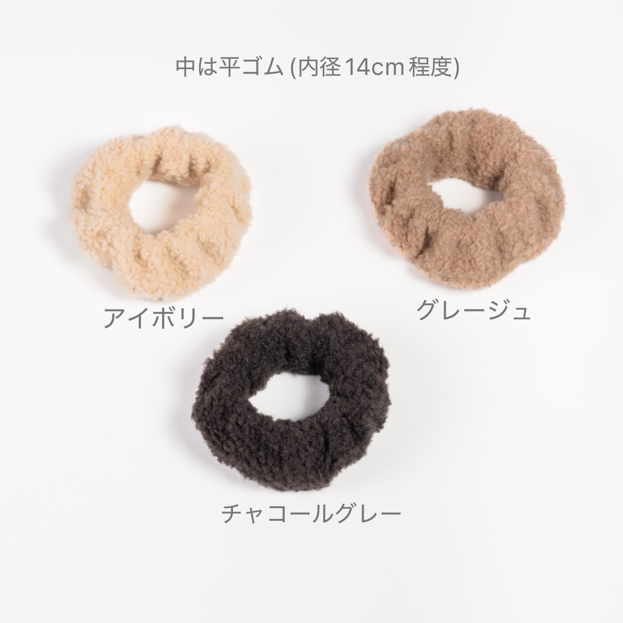 静電気や電波を吸収して熱に変換・放電する特殊繊維で作られた生地で、シュシュをつくりました。ふわふわ軽く暑苦しくないのに、放電するから何故かじんわりあたたまる。オールシーズンお使いいただけるアイテムです。