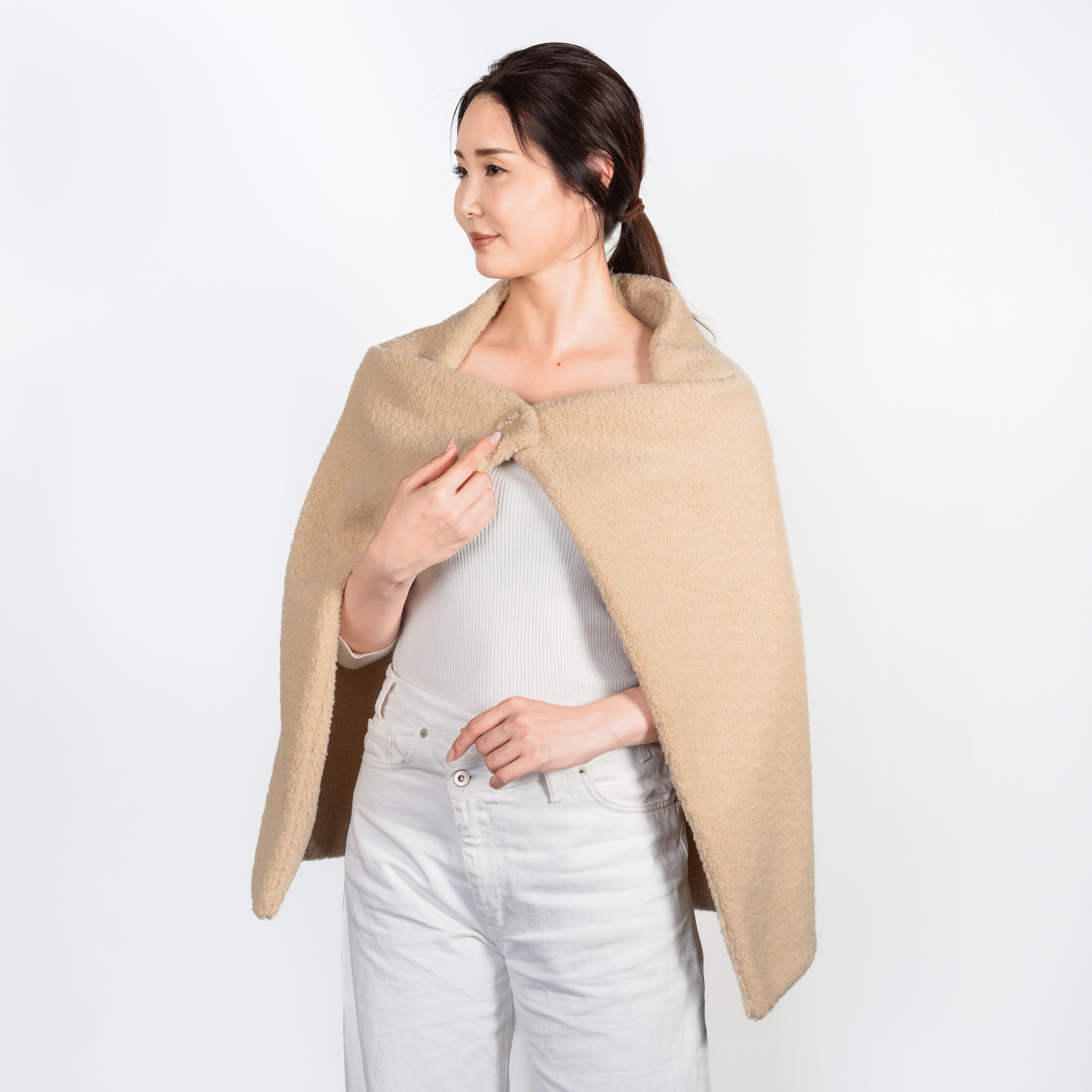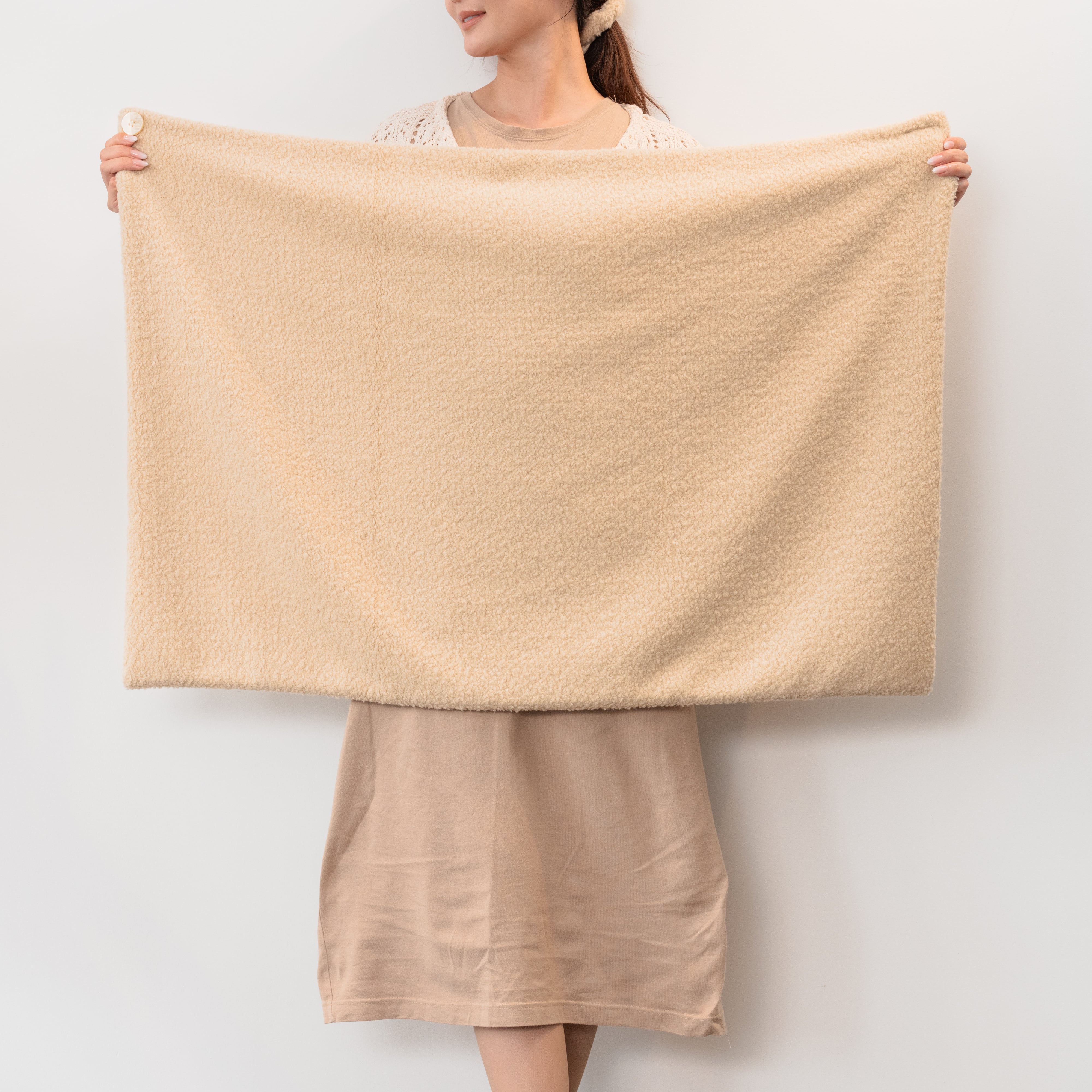 静電気や電波を吸収して熱に変換・放電する特殊繊維で作られた生地で、ブランケットをつくりました。ふわふわ軽く暑苦しくないのに、放電するから何故かじんわりあたたまる。オールシーズンお使いいただけるアイテムです。